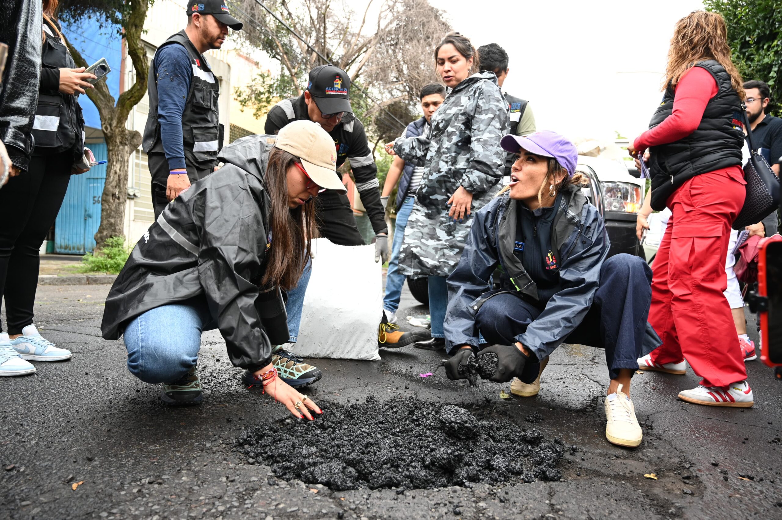 La alcaldesa Alessandra Rojo de la Vega convocó a vecinas, vecinos y colectivos ciudadanos a participar en la acción, aportando un costal de asfalto en frío o sumándose a las cuadrillas que desde las 8:00 horas recorrerán calles y avenidas para tapar baches.