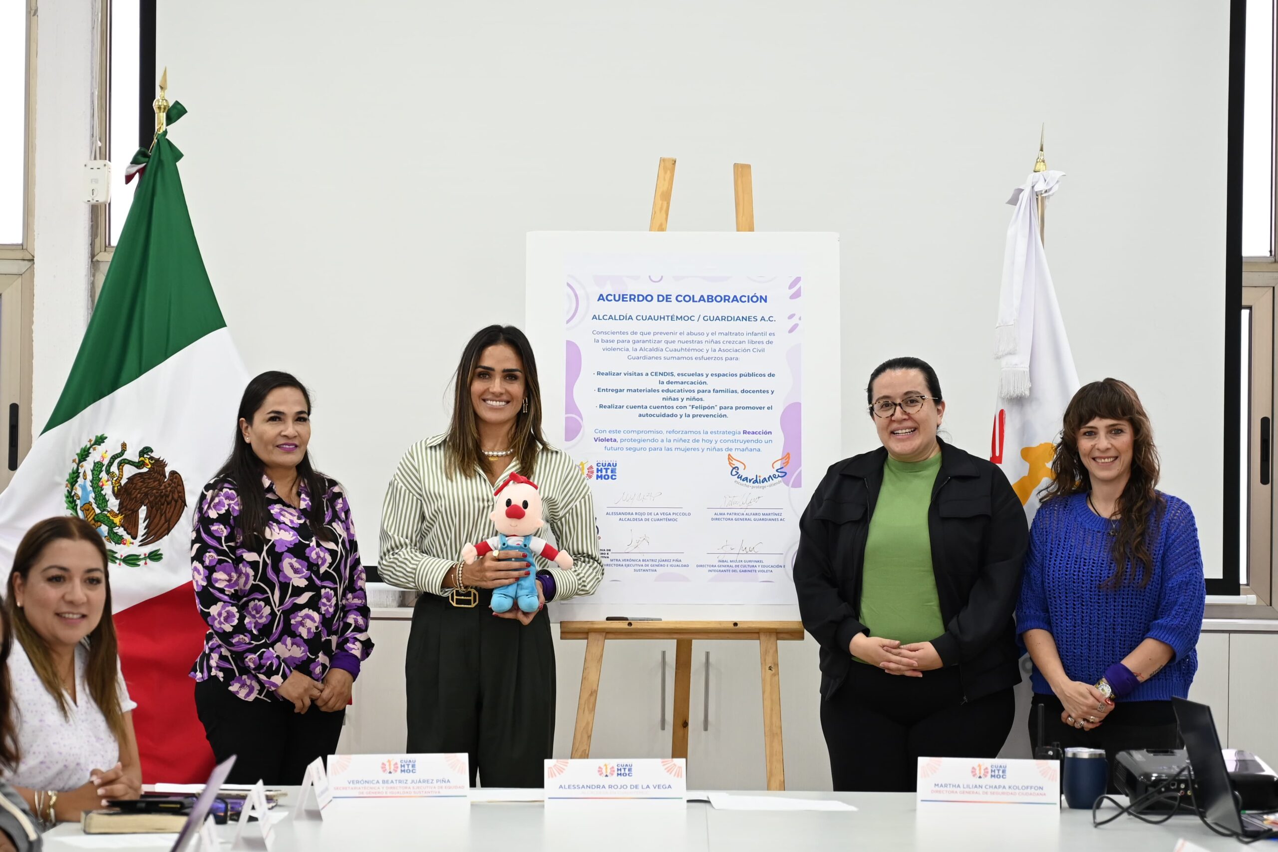Con la alcaldesa Alessandra Rojo de la Vega al frente, la Alcaldía Cuauhtémoc se convirtió en la primera demarcación de la Ciudad de México en poner en marcha un programa permanente de prevención del abuso y maltrato infantil, tras la firma de un convenio con la asociación civil Guardianes AC durante la novena sesión del Gabinete Violeta.