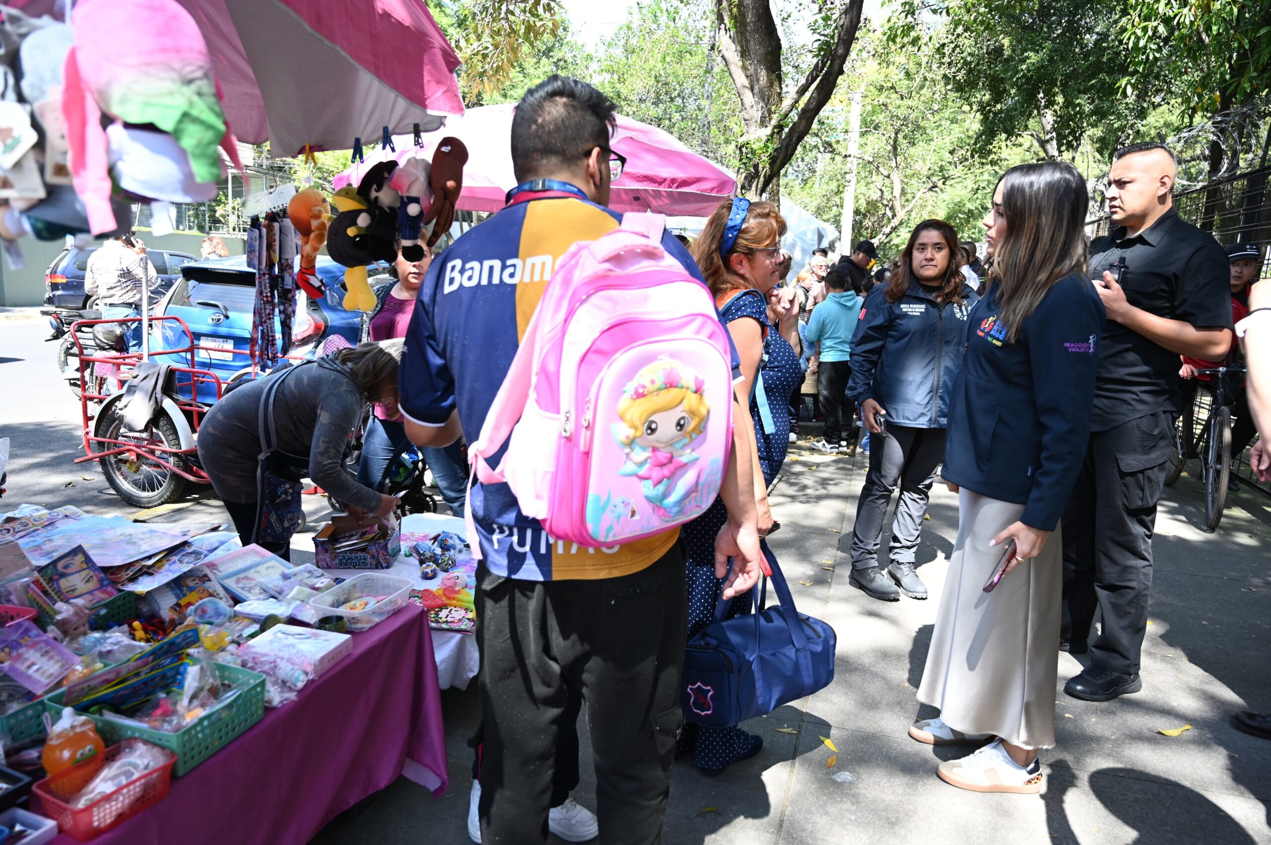 Acompañada por personal de las direcciones Generales de Gobierno, Jurídica y de Servicios Legales, así como elementos de la Policía Auxiliar adscritos a la demarcación, la alcaldesa arribó al sitio para dialogar con los comerciantes y lograr el retiro de los negocios semifijos.