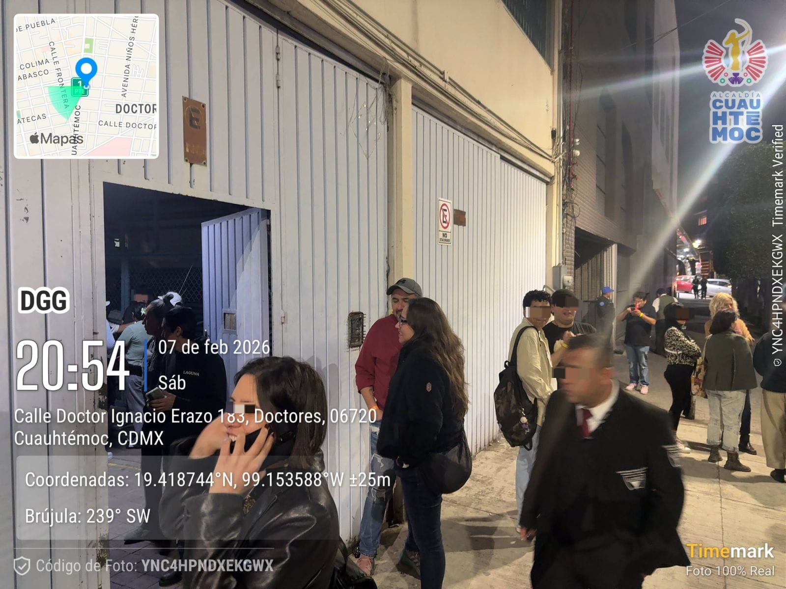 La Alcaldía Cuauhtémoc realizó el desalojo de un evento público que se desarrollaba sin autorización en un inmueble ubicado en Doctor Erazo 182, colonia Doctores, donde se concentraban aproximadamente 853 personas.